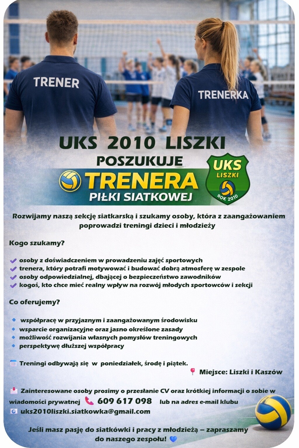 🏐 UKS 2010 LISZKI POSZUKUJE TRENERA PIŁKI SIATKOWEJ!